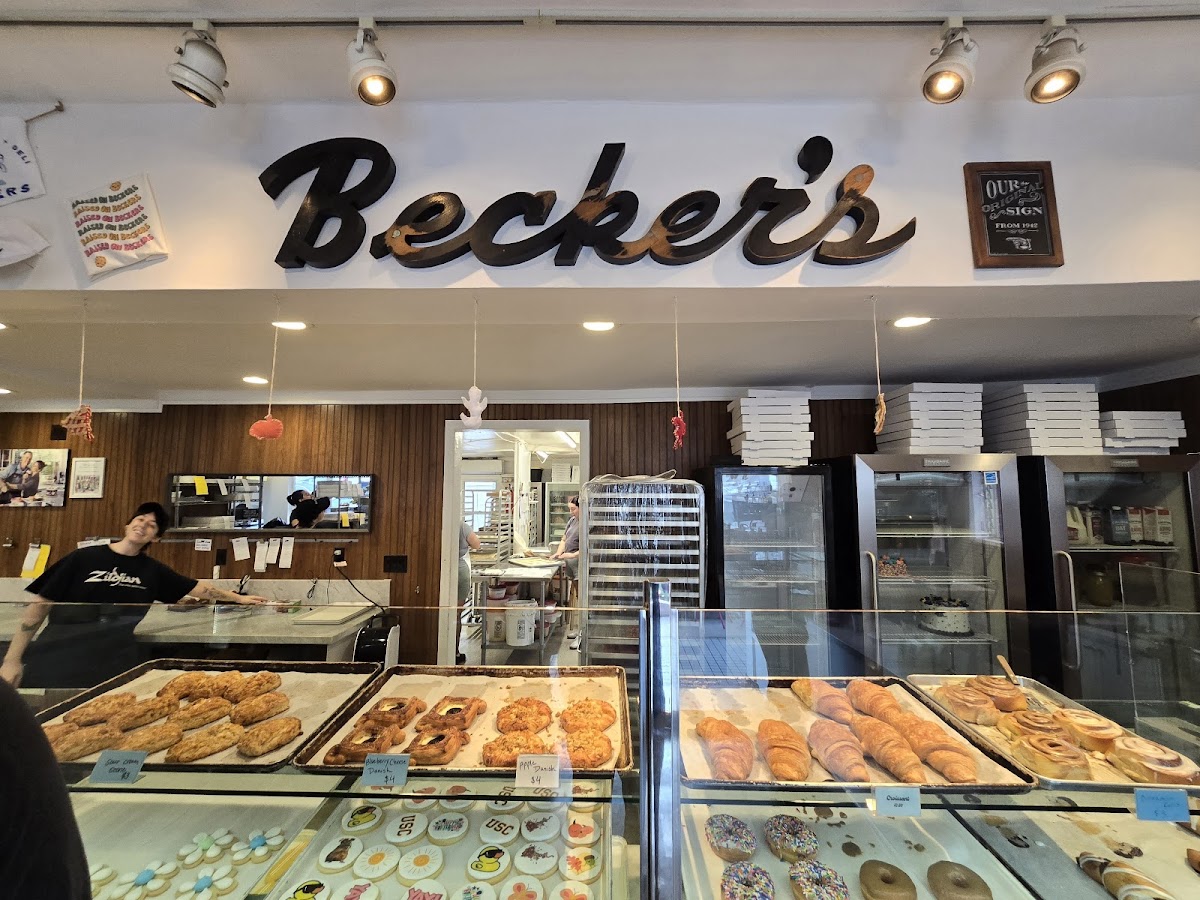 At Beckers Bakery, nestled in the heart of Manhattan Beach, a passion for baking transforms everyday ingredients into extraordinary experiences. Known for their decadent pastries, from towering croissants to vibrant custom cookies, each treat is crafted with care and creativity. Customers rave about the perfect coffee paired with delightful apple fritters and mouthwatering cakes. With a welcoming atmosphere, exceptional service, and a commitment to quality, Beckers is not just a local favorite; it's a community destination for celebrations, be it a casual coffee break or a grand event. Here, every visit promises a sweet escape worth savoring.